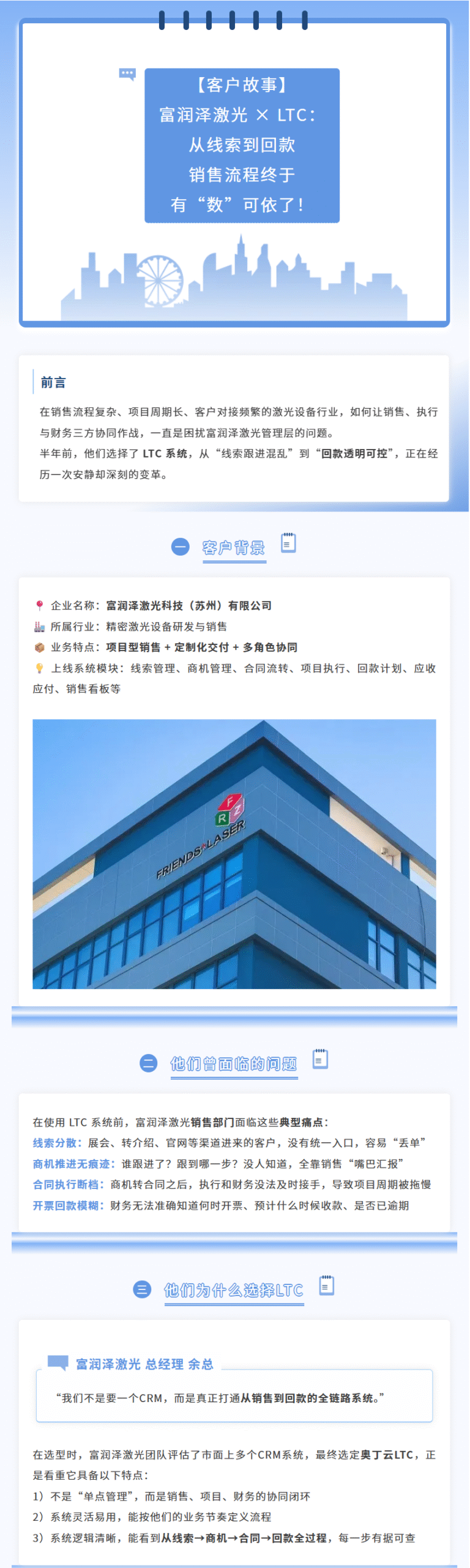 首页公司新闻【客户故事】富润泽激光 × LTC:从线索到回款,销售流程终于有“数”可依了! 【客户故事】富润泽激光 × LTC:从线索到回款,销售流程终于有“数”可依了!公司新闻 / CRM, 案例 / 作者: 奥斯坦丁